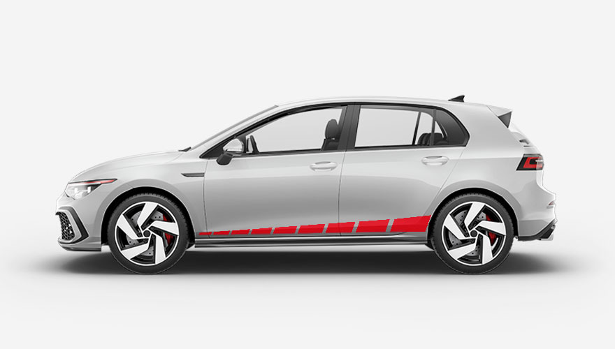 Polepy na bok auta - sportovní přerušovaný pruh. Výška pruhu v návrhu je 15 cm, ale můžeme ji před výrobou upravit.