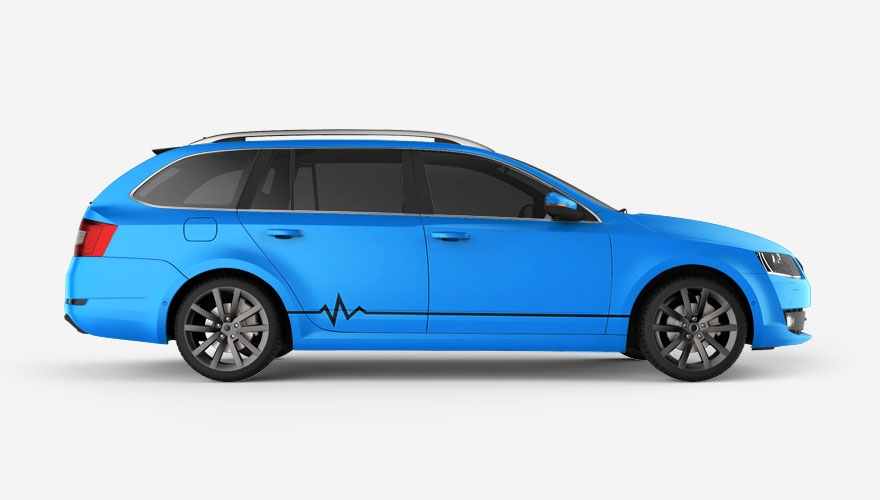 Tenký pruh zakončený vlnovkou na boční část auta. Cena obsahuje 2 kusy polepů (na obě strany auta).