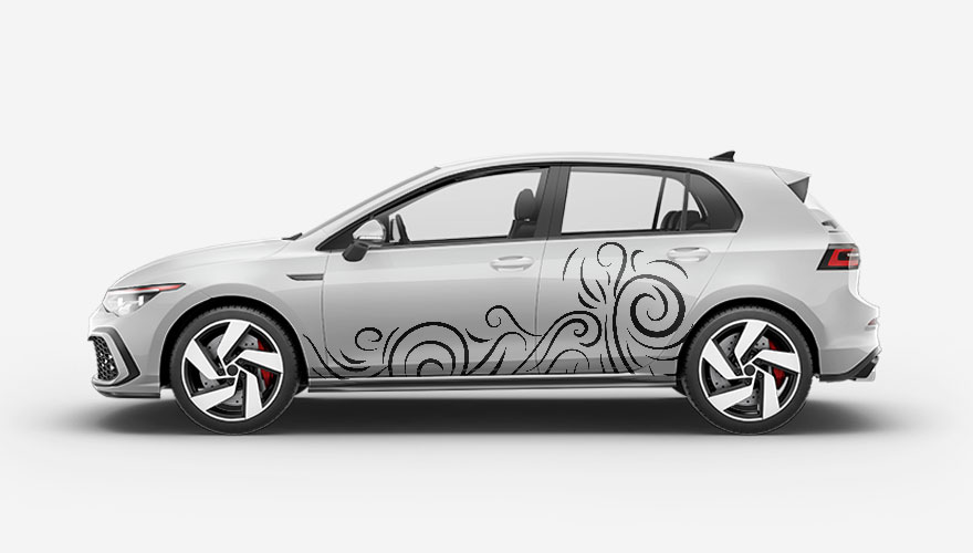 Designový polep na bok auta vytvořený z různě velkých a tvarovaných linek.