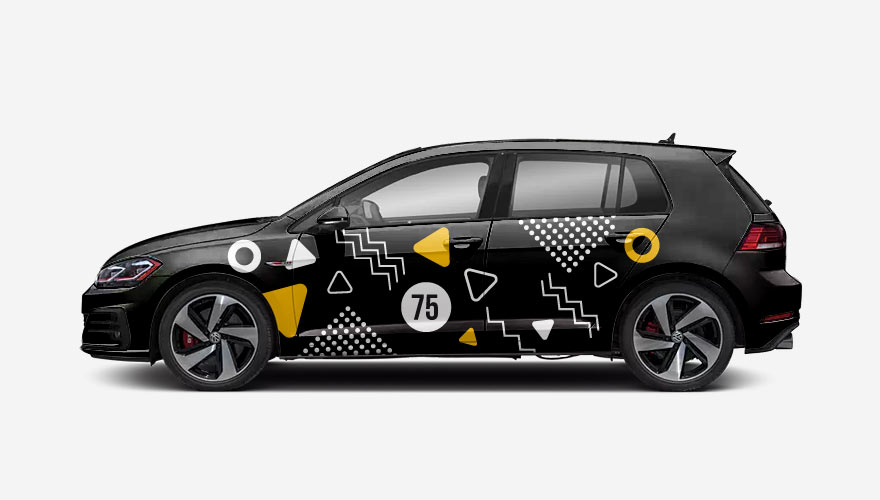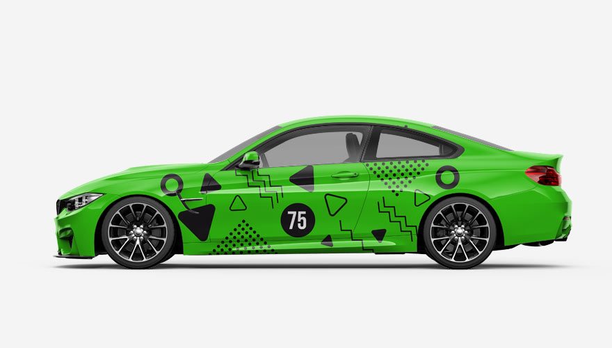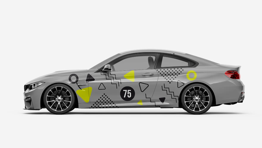 Designové polepy složené z různých tvarů na boky auta. Polep je možné udělat v jakýchkoliv barvách a v libovolné kombinaci barev (není potřeba se držet rozložení barev v našich návrzích). Cena obsahuje 2 kusy polepů (na obě strany auta).