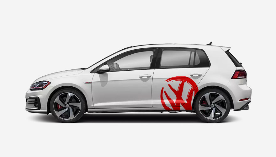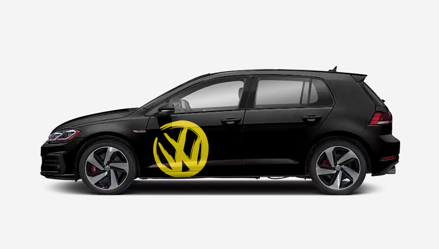 Nápis Volkswagen na bok auta