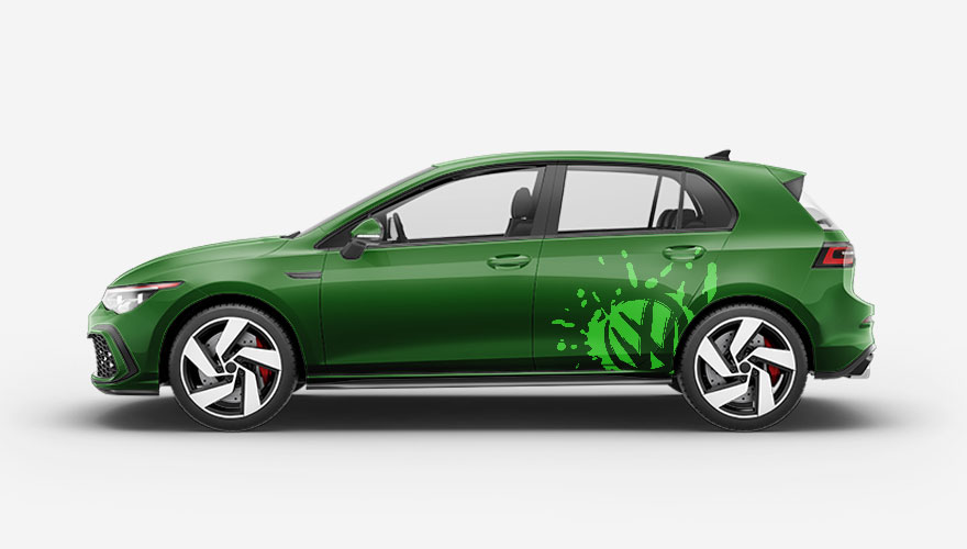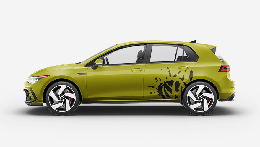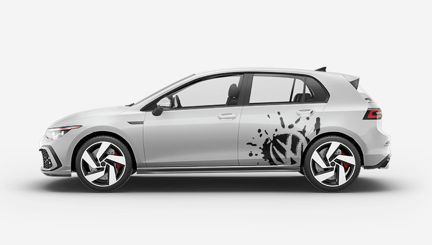 Polep pro vozidla Volkswagen - logo VW na boku auta v rozstříknutém fleku.