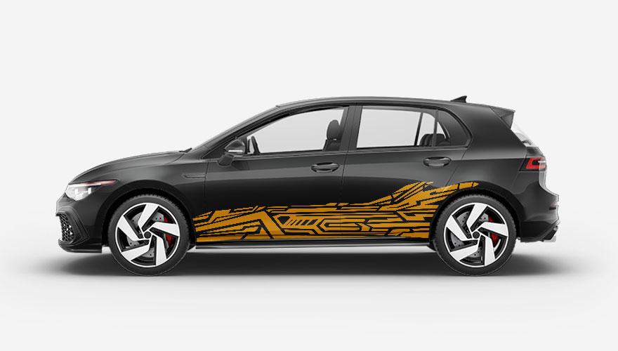 Polepy na bok auta - geometrické tvary přes celý spodek auta. Cena obsahuje 2 kusy polepů (na obě strany auta).