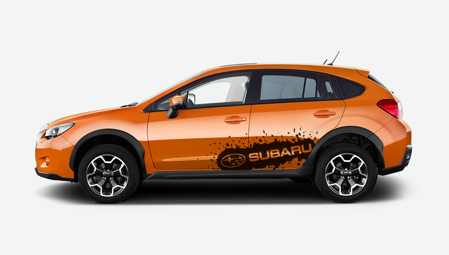 Polepy na boky (případně i kapotu) s logem Subaru v rozstříknuté blátivé kaluži. Cena obsahuje 2 kusy polepů (na obě strany auta).
