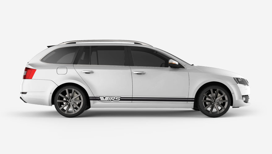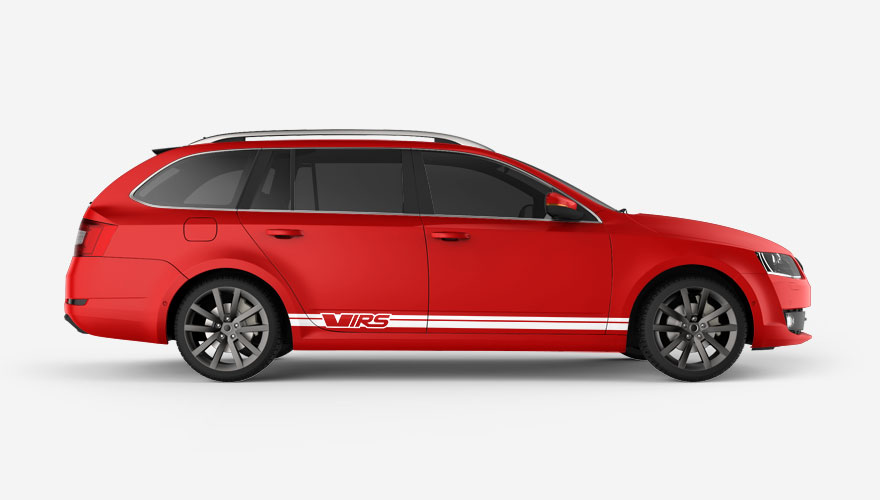 Polepy na bok auta - jednoduchý pruh na spodní hranu dveří s logem VRS. Logo je možné změnit za nápis Škoda nebo libovolný jiný text či logo.