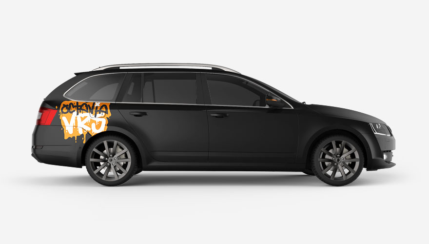 Polep navržený speciálně na Škodu Octavii - nápis Škoda Octavia ve stylu grafitti. Cena obsahuje 2 kusy polepů (na obě strany auta). Text je možné upravit i na jiný model - např. ... celý popis