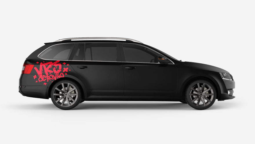 Polep navržený speciálně na Škodu Octavii - nápis Škoda Octavia ve stylu grafitti. Cena obsahuje 2 kusy polepů (na obě strany auta). Text je možné upravit i na jiný model - např. ... celý popis