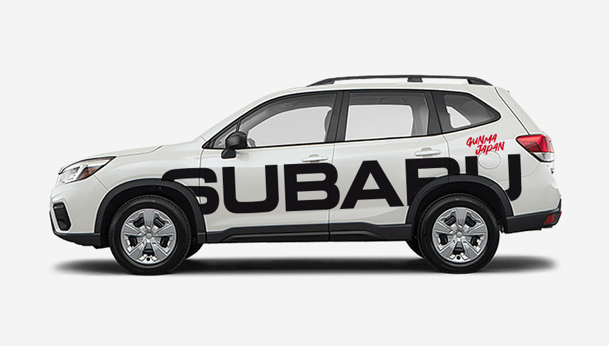 Velký nápis SUBARU přes celou boční část auta a menší nápis Gunma Japan odkazující na město, kde se Subaru v Japonsku vyrábí. Velikost polepu je možné přizpůsobit na jakýkoliv ... celý popis