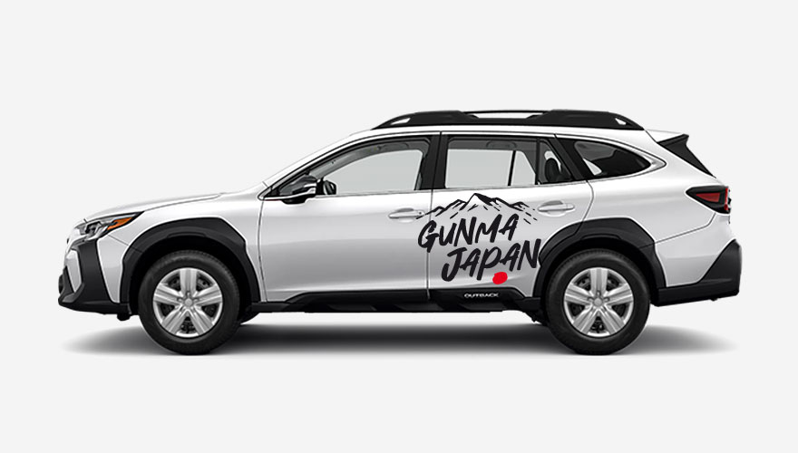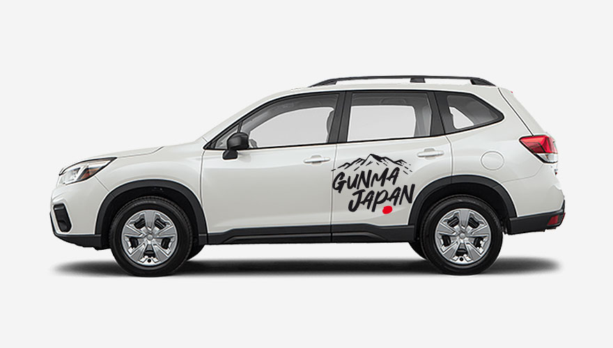 Nápis Gunma Japan s horami a červeným kruhem z Japonské vlajky. Gunma je město, kde je hlavní továrna Subaru. Polep je možné umísti na bok auta nebo na kapotu. Velikost a barvy můžeme ... celý popis