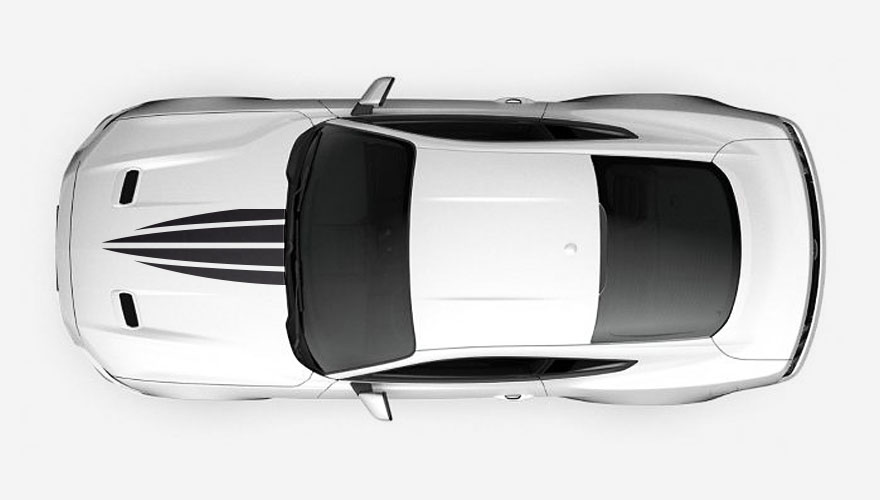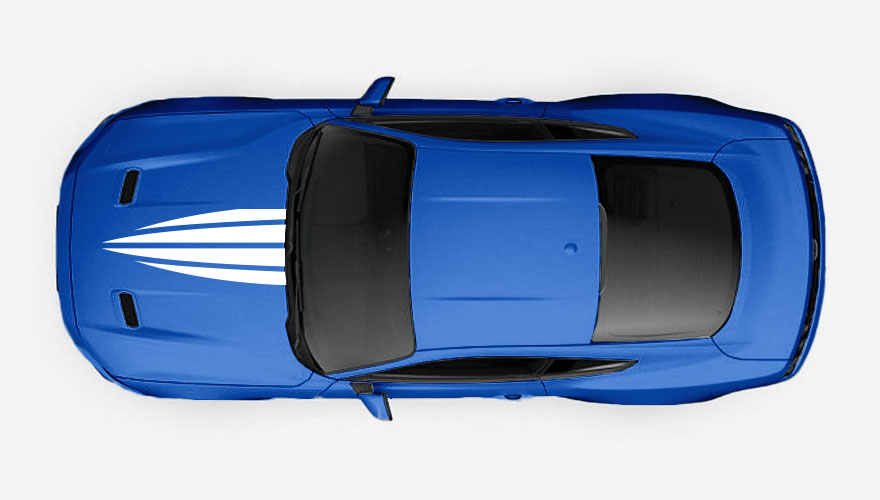 Polep na kapotu - čtyři pruhy do špičky. Barvu i velikost polepu je možné jakkoliv přizpůsobit.