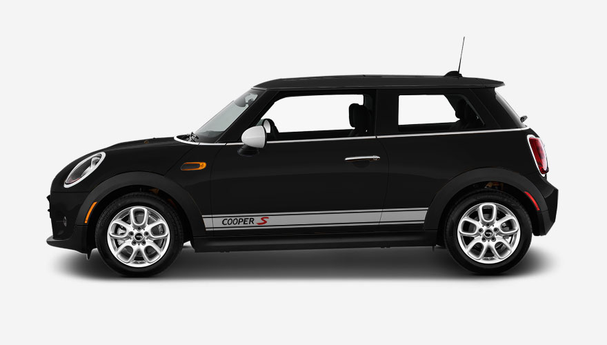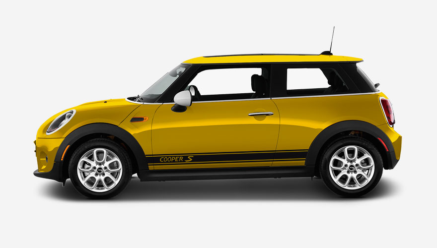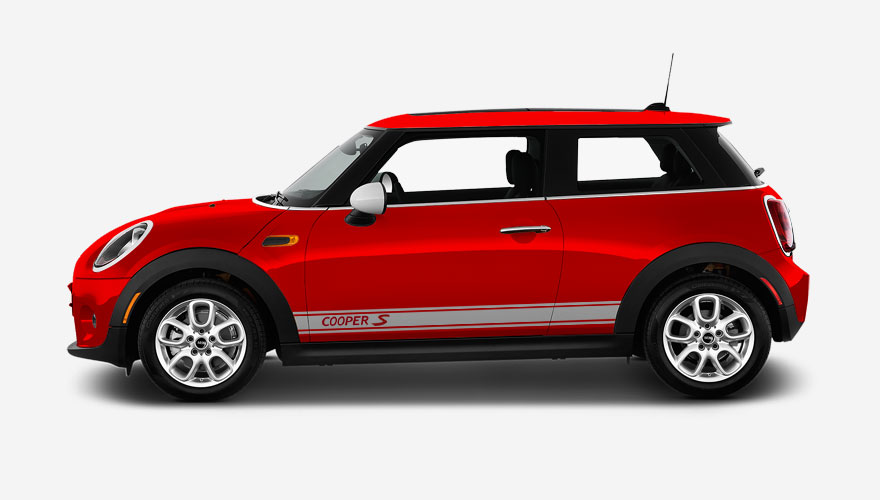 Polepy na bok auta - pruh s nápisem Cooper S (nápis je možné změnit nebo odstranit). Polep je určen na vozy Mini Cooper.