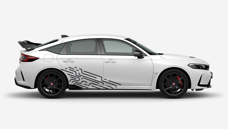 Designový polep na bok auta vytvořený z různě velkých a tvarovaných linek.