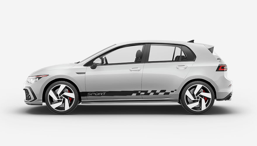 Polepy na bok auta - pruh zakočený šachovnicí s nápisem SPORT.