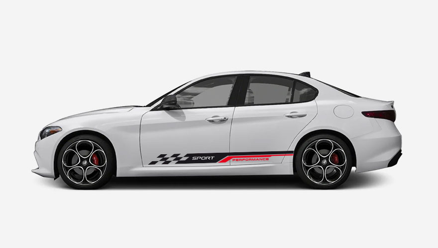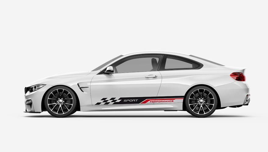 Polepy na bok auta - pruh zakočený šachovnicí s nápisem SPORT.