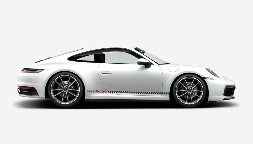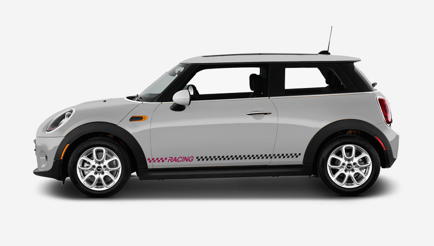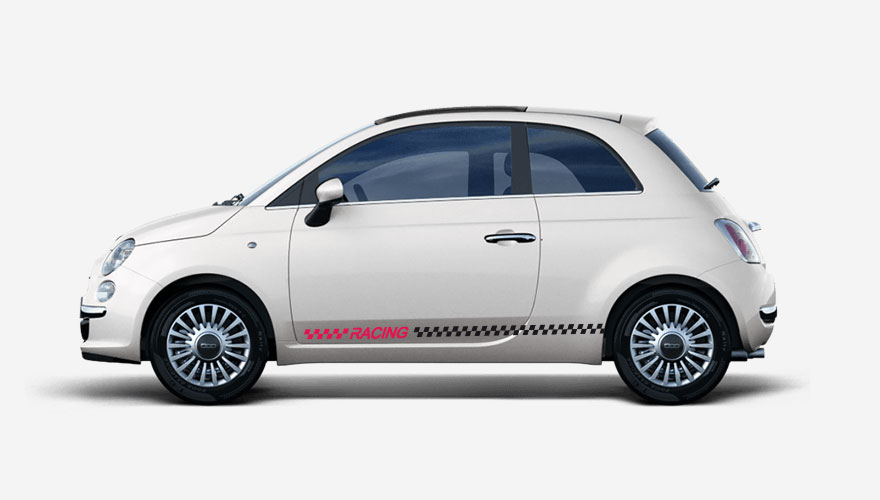Polepy na bok auta - pruh na spodní hranu dveří se šachovnicí a nápisem.