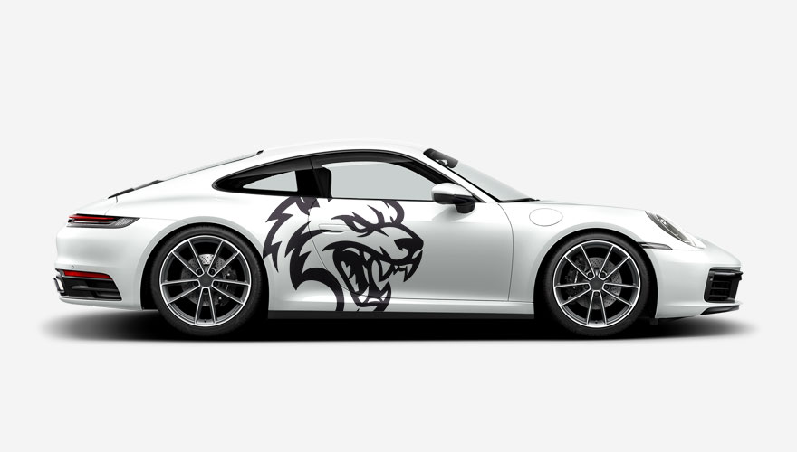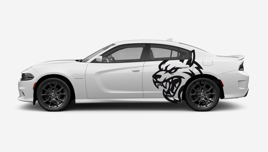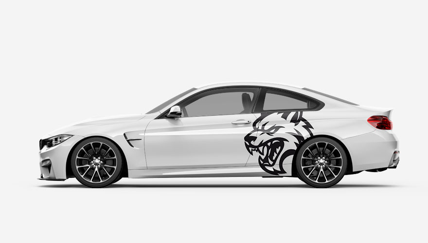 Polep boku auta s hlavou medvěda určený na americká auta např. Ford Mustang, Dodge Charger, Dodge Challenger, apod.