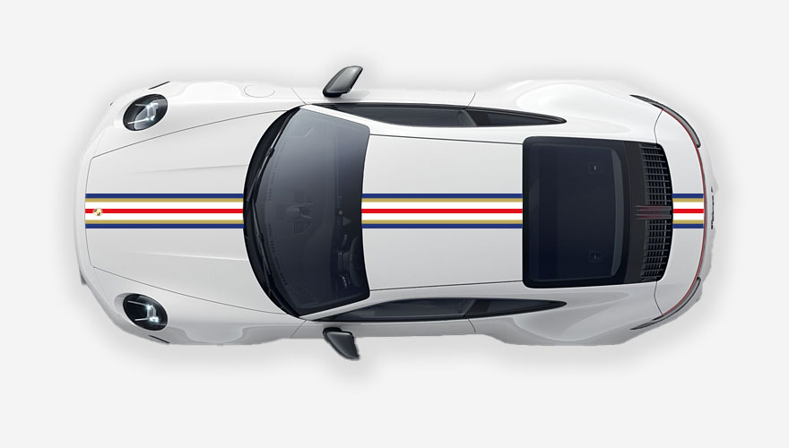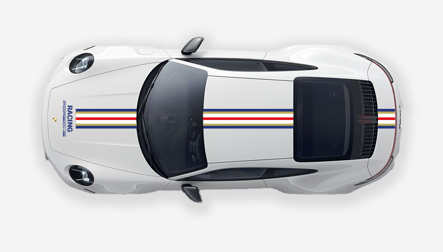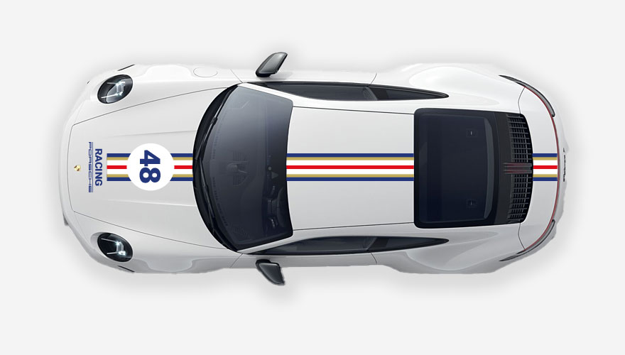 Kategorie: rychlé pruhy, polepy na střechu, závodní polepy, polepy Porsche