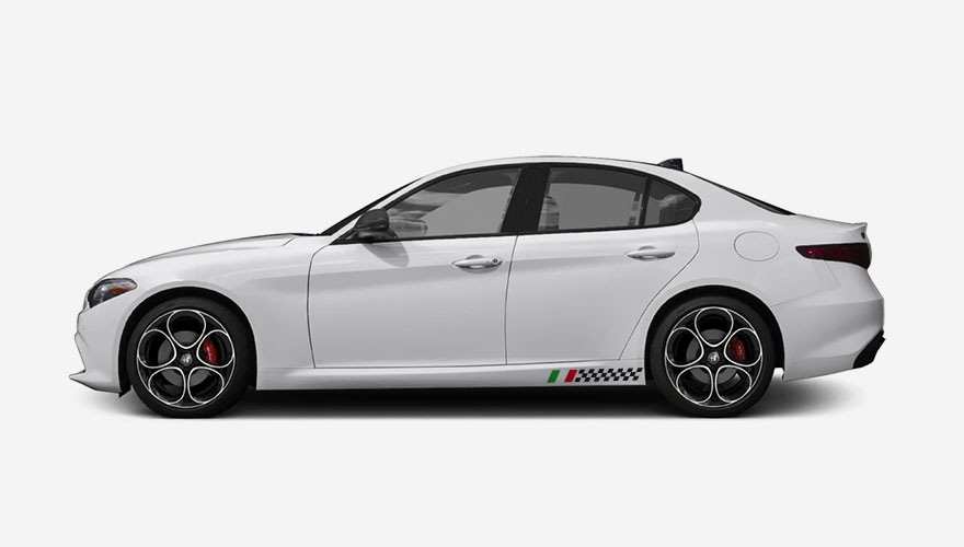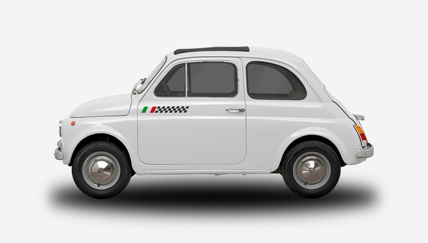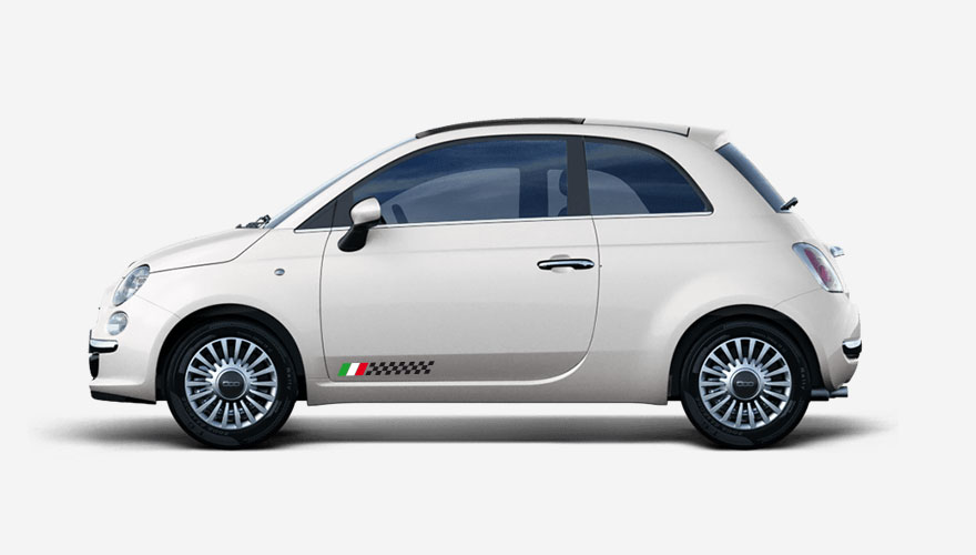 Polepy na bok auta - černý šachovnicový pruh s Italskou vlajkou.