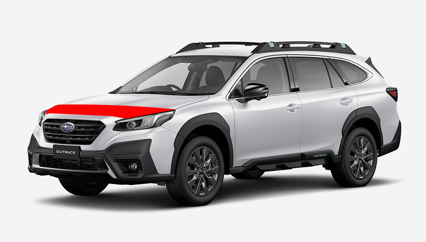 Ochranná PPF fólie na kapotu Subaru Outback. Fólie chrání lak před poškrábáním, potlučením od kamínků nebo jiným mechanickým poškozením laku.