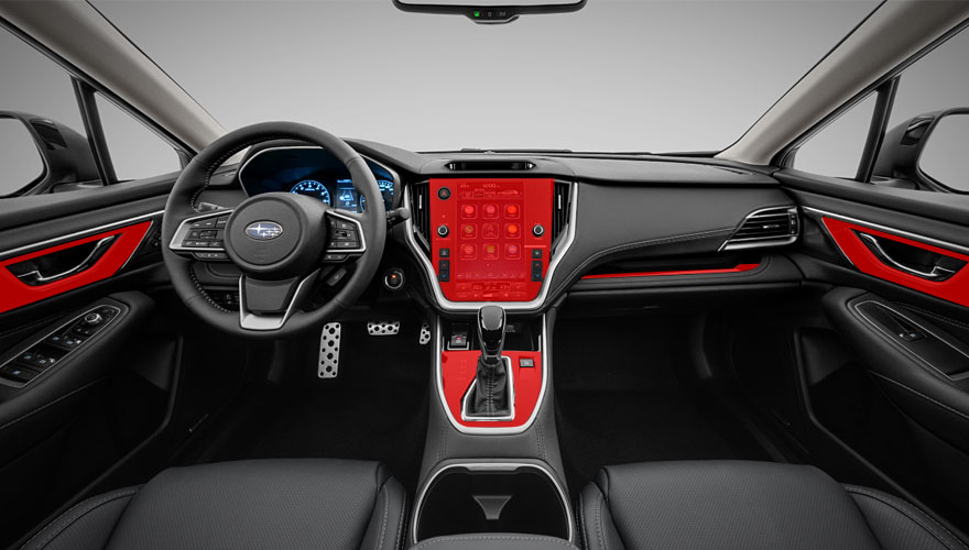 Ochranná PPF fólie na lesklé plasty v interiéru Subaru Outback. Polep je nachystám na displej, plast kolem řadící páky, lištu před spolujezdcem, lesklý plast kolem klik dveří. Na ... celý popis