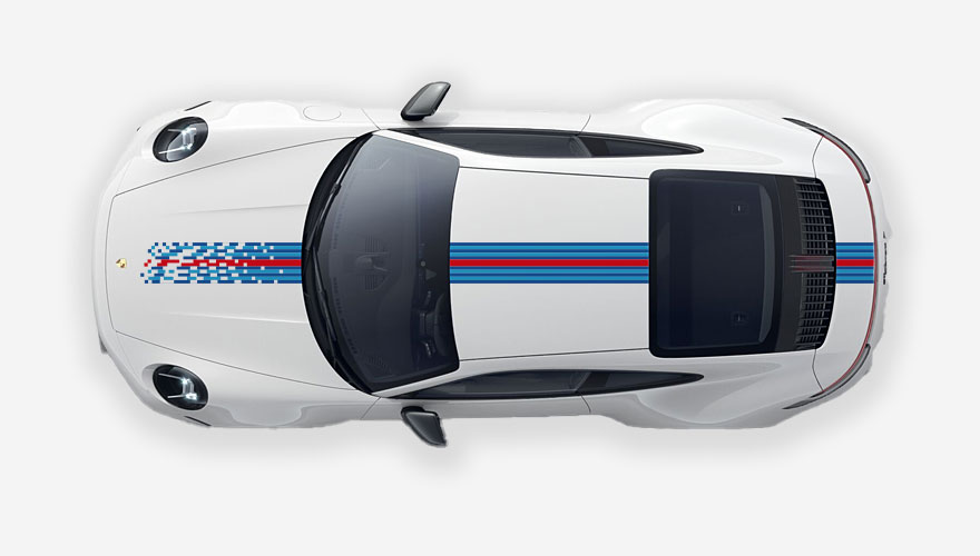 Kategorie: rychlé pruhy, polepy na střechu, závodní polepy, polepy Porsche