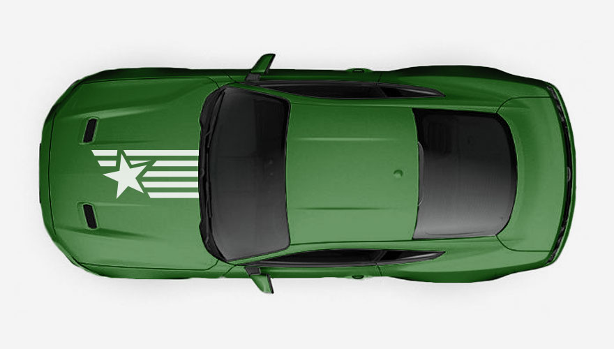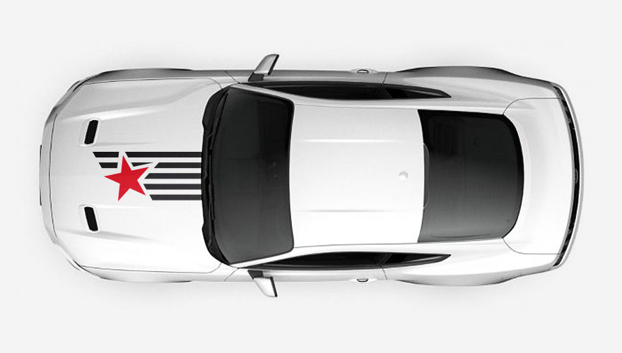 Polep na kapotu s hvězdou a pruhy ve stylu americké vlajky. Polepy jsou vhodné na americká auta např. Mustang, Dodge, Ford, Jeep, Chervrolet, RAM.