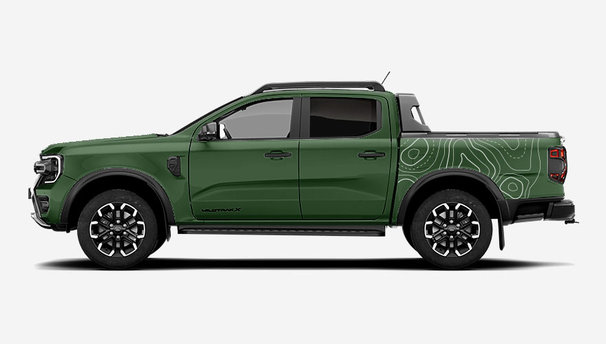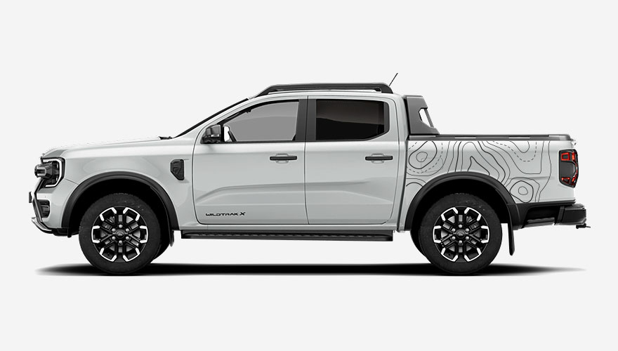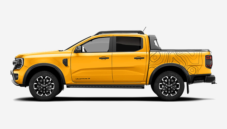 Polepy na boky Ford Ranger - design vrstevnic na korbu auta. Cena obsahuje 2 kusy polepů (na obě strany auta). Výška nápisu je cca 160x60 cm.