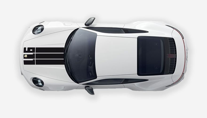 Tři pruhy na kapotu Porsche s nápisem 911.