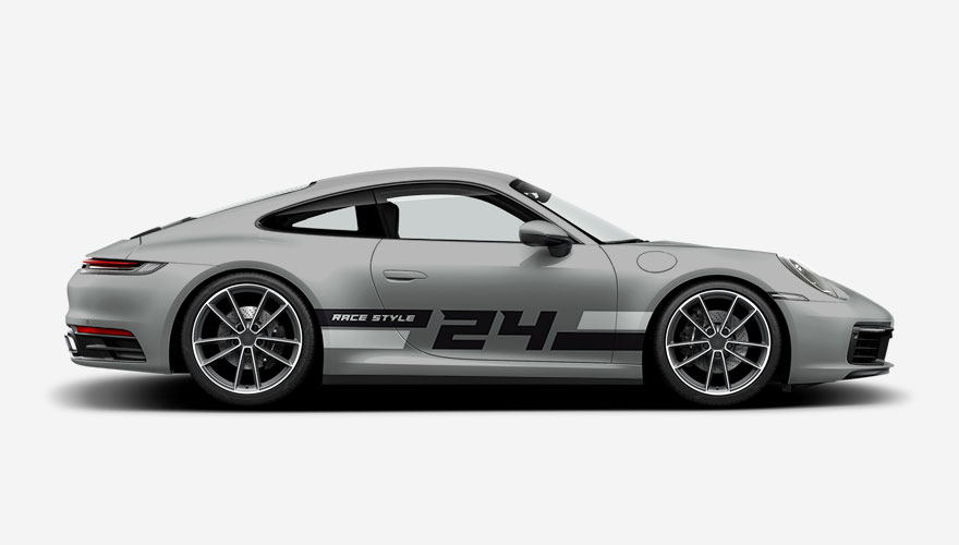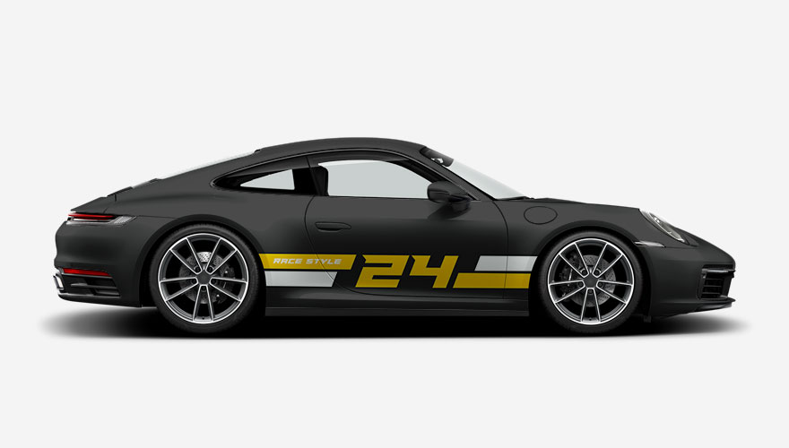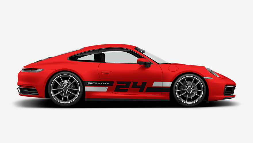 Závodní polepy na bok auta s pruhy a číslem